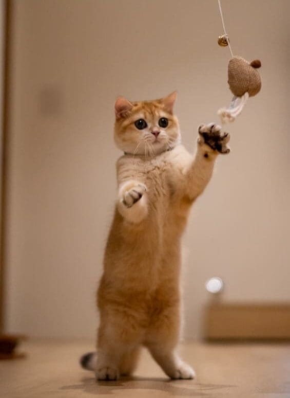 Illus. Cat playing with mouse on fishung rod